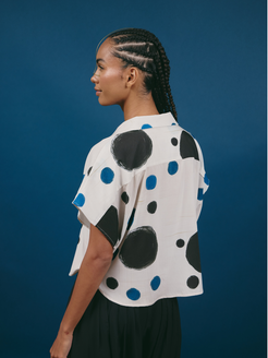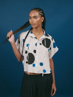Moderna y femenina, esta blusa corta presenta jaladores en el cuello, cierre de botones frontales y mangas cortas. Su silueta ligera y versátil aporta un toque delicado, ideal para crear looks casuales o sofisticados con comodidad y estilo sin esfuerzo.